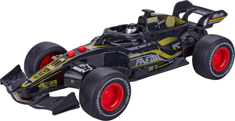 Zažijte napětí jako na skutečné trati s touto závodní formulí o délce 19 cm. Díky setrvačníkovému pohonu se po natažení sama rozjede, světelné a zvukové efekty umocní realističnost a dvojice figurek pilotů přidá hře ještě více možností. Hračka je vyrobena z kvalitního plastu, je odolná, vhodná od 3 let a baterie jsou součástí balení – zábava může začít hned.