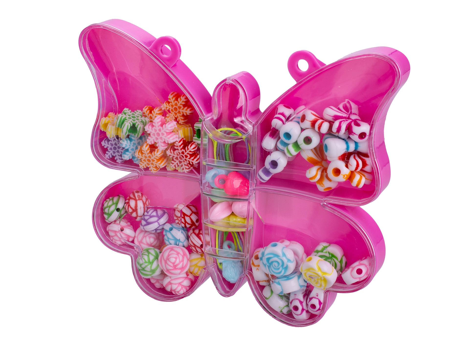 Objevte zábavnou sadu navlékacích korálků, se kterou si děti od 3 let vytvoří vlastní šperky a dekorace. Sada nabízí 20 barevných korálků ve tvarech motýlů a mušlí, uložených v praktickém boxu pro snadné přenášení. Tvoření podporuje jemnou motoriku, trpělivost a kreativitu.