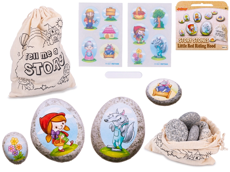 - 10 kamínků, samolepky s motivy z pohádky Červená karkulka