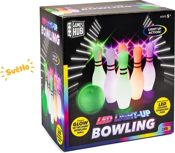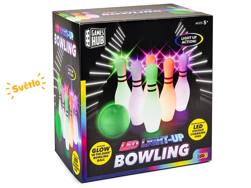 Užijte si rodinnou zábavu s touto bowlingovou sadou pro děti od 5 let. Obsahuje 6 kuželek vysokých 25,5 cm a speciální míček, který po aktivaci svítí díky LED diodám. Světelný efekt dodá hře kouzlo i za šera, rozvíjí motoriku a koordinaci a díky kompaktním rozměrům je vhodná do interiéru i exteriéru.