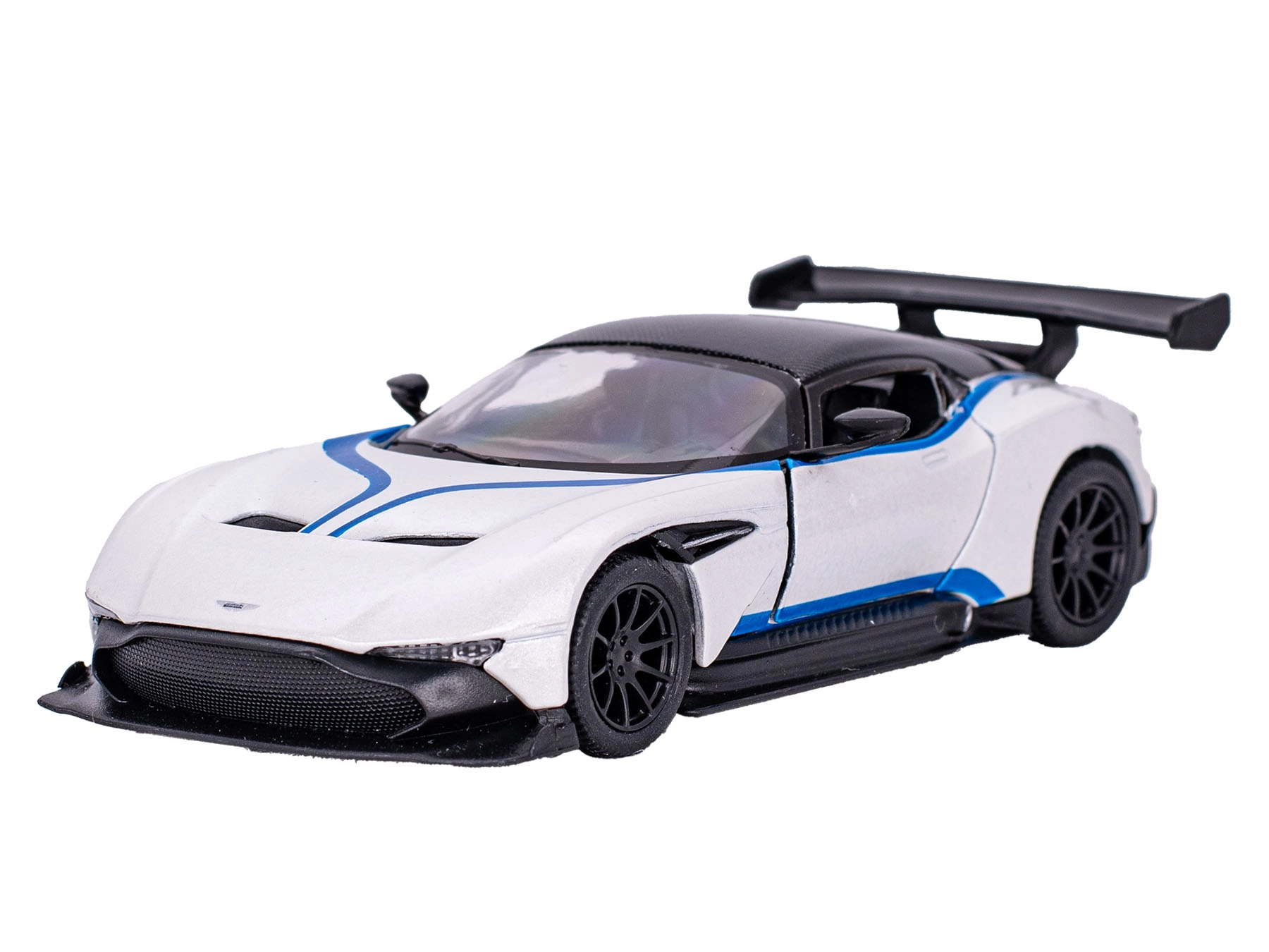 Tento realistický model vozu ASTON MARTIN VULCAN zaujme kvalitním kovovým zpracováním, které věrně kopíruje linie skutečného supersportu. Díky funkci zpětného natažení stačí autíčko posunout dozadu a vypustit – samo vyrazí vpřed. Otevírací dveře přidávají na autentičnosti a zábavě při hře i vystavení.