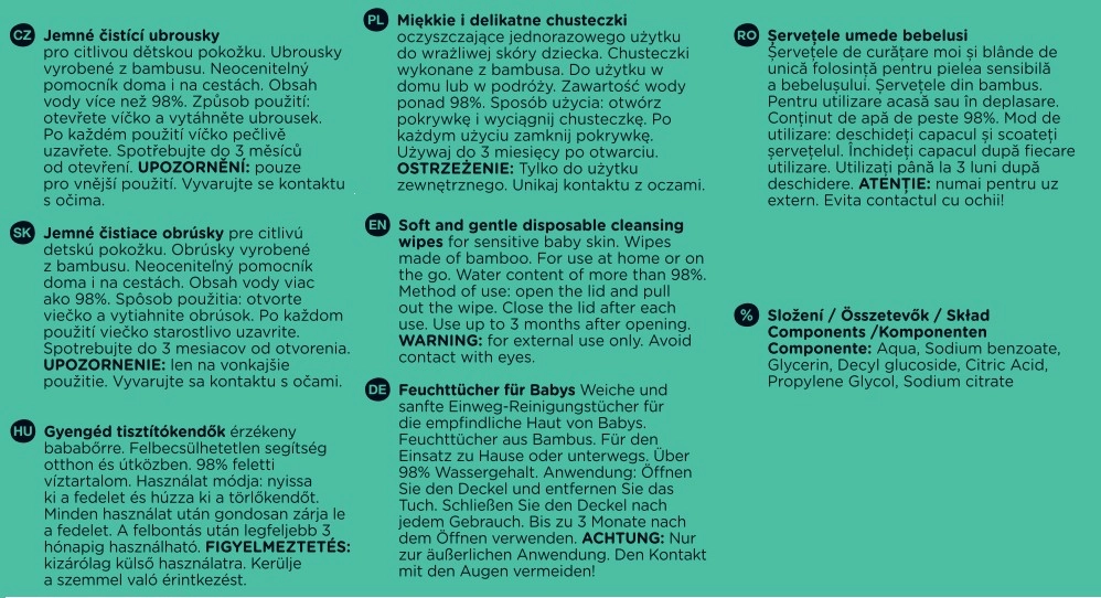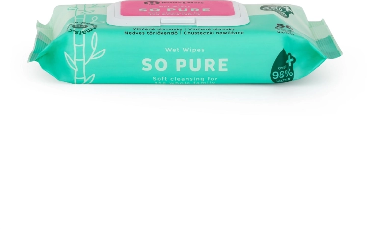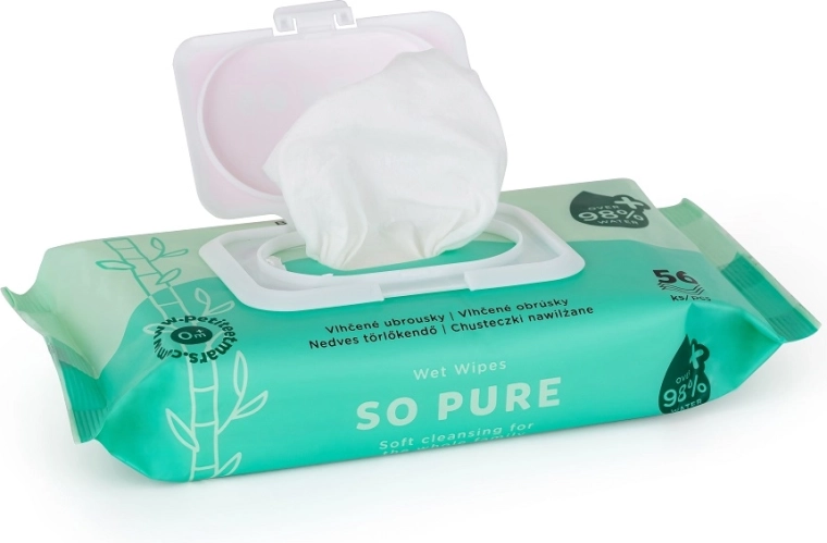 Vysoce jemné vlhčené ubrousky z bambusu SO PURE jsou ideální pro každodenní péči o miminka i celou rodinu. Díky více než 98 % vody zajišťují šetrné očištění bez zbytečných přísad, jsou bez parfemace a vhodné i pro velmi citlivou pokožku. Bambusové vlákno je přirozeně měkké, příjemné na dotek a spolu s biologickou odbouratelností představuje ekologickou volbu.