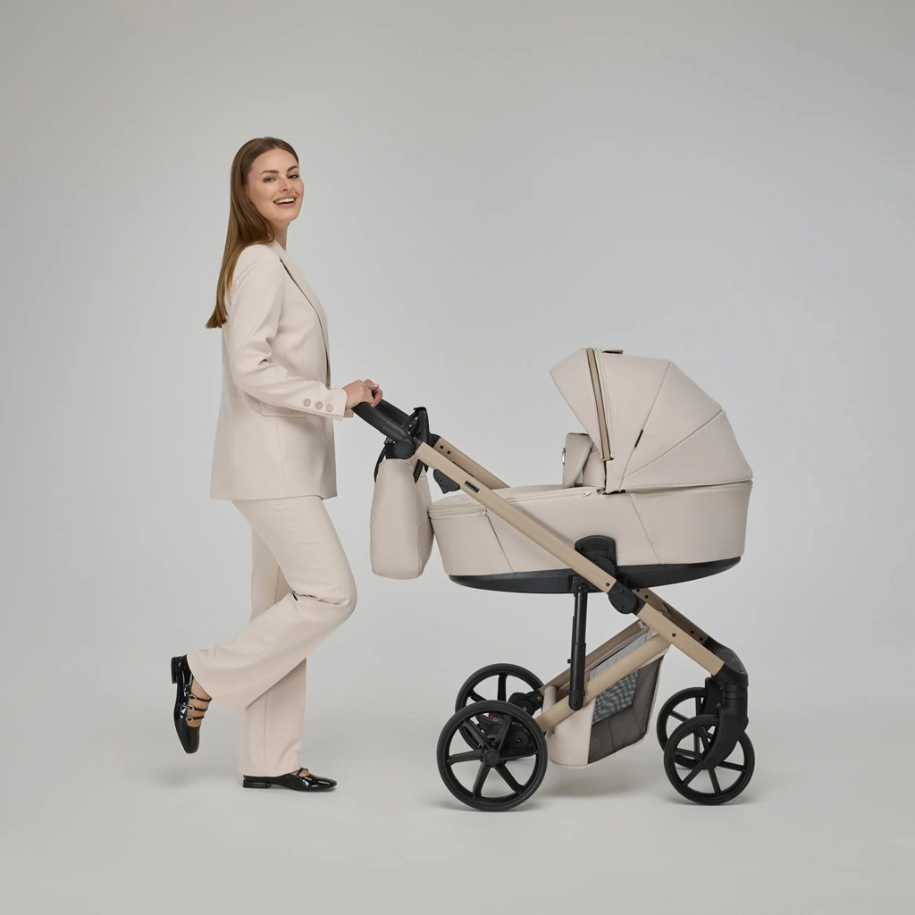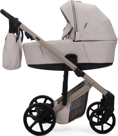 Adamex Dolce 2v1 kombinuje moderní design, špičkové odpružení a praktičnost. Hluboká korba má zcela odnímatelnou vnější látku stříšky s integrovanou vzdušnou moskytiérou a dva větrací otvory na zip pro ideální cirkulaci vzduchu. Sluneční clona efektivně chrání před paprsky, zatímco pěnová vyrovnávací matrace s vyztužením podpírá děťátko a zvyšuje pohodlí při spánku.