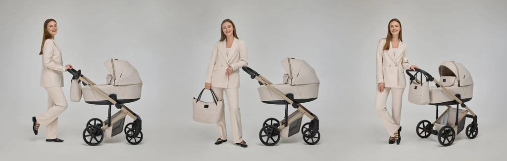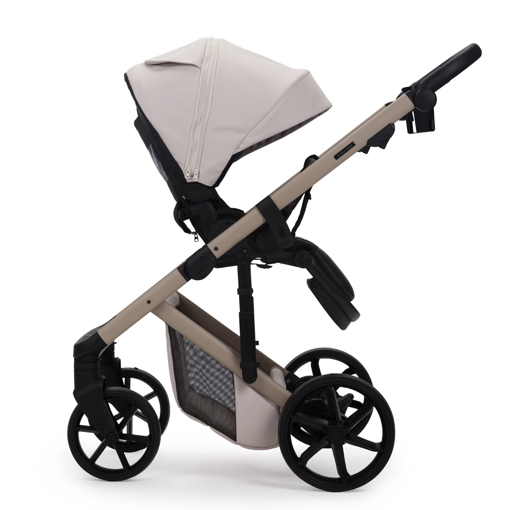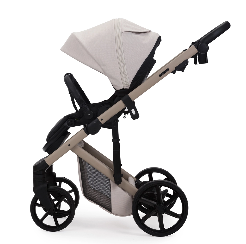 Součástí setu je stylová taška, univerzální pláštěnka, moskytiéra, držák na nápoje a sluneční clona. Velký koš pod kočárkem pojme nezbytnosti na každý výlet.