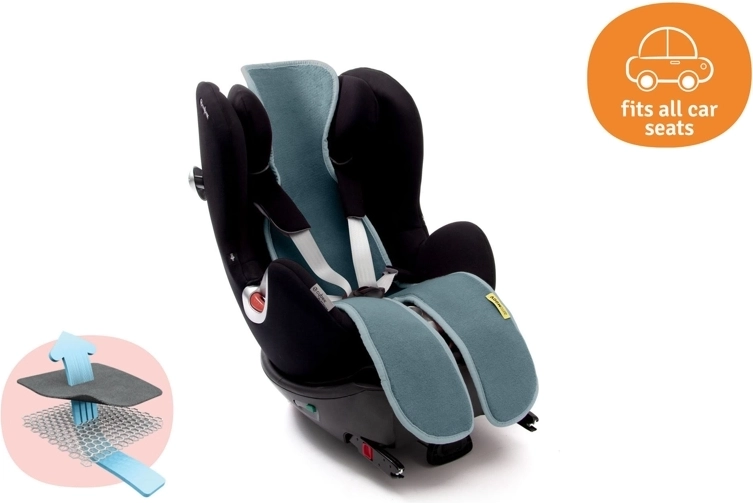 Promyšlené tvarování s otvorem pro přezku a bočním vedením pro ramenní pásy zajišťuje, že vložka pevně drží na místě a neomezuje bezpečnost. Díky novému střihu je kompatibilní i s rostoucími autosedačkami pro děti od narození až do 12 let, přičemž ideálně sedí modelům 15–36 kg.