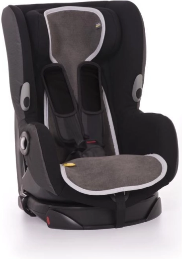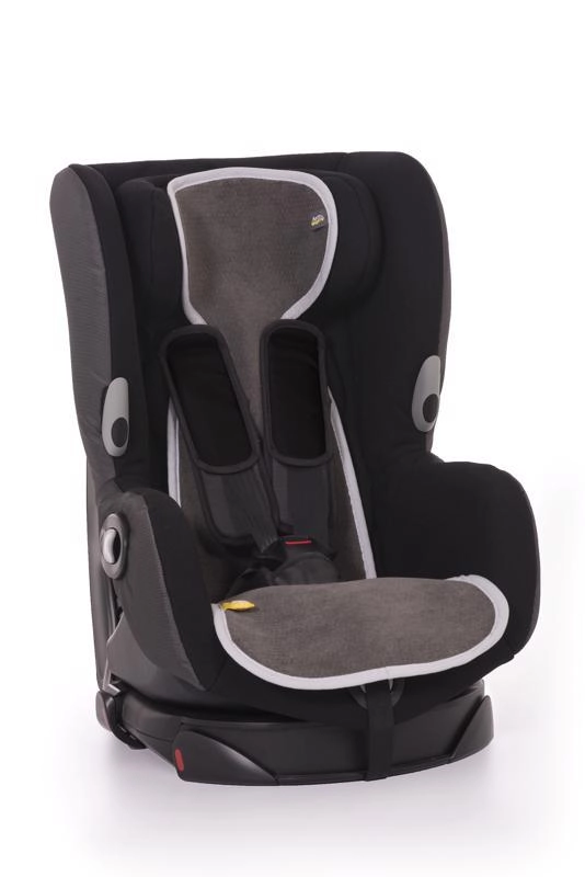 Praktické tvarování s otvorem pro střední přezku a pro ramenní části pásů zajišťuje stabilní polohu vložky bez posouvání a neomezuje bezpečnostní pásy. Vnější povrch z organické bavlny je šetrný k citlivé pokožce a poskytuje měkké, prodyšné pohodlí po celý rok.