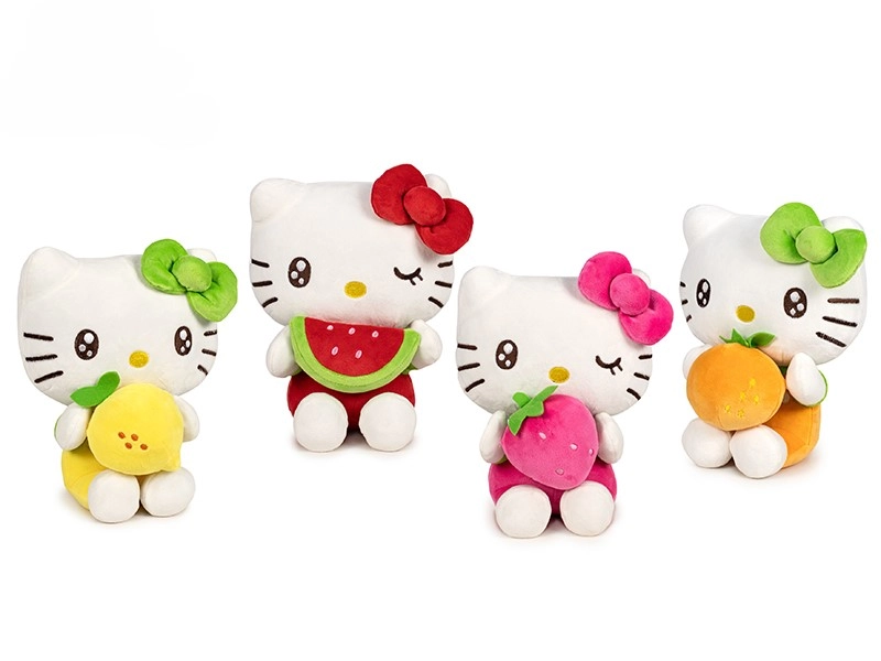 Oblíbená postavička Hello Kitty přichází v něžně zpracované plyšové podobě, která je bezpečná pro nejmenší. Sedící figurka drží v tlapkách ovoce a díky měkkému, příjemnému plyši láká k mazlení i hraní. Skvěle se hodí do kočárku, postýlky i jako dekorace do dětského pokojíčku.