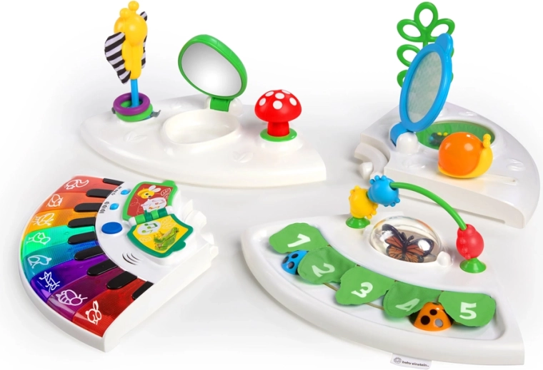 Objevte všestranné aktivní centrum Baby Einstein Around We Grow 4v1, které roste s vaším děťátkem od 6 měsíců do 3 let. Nabízí 4 režimy hraní a učení, více než 15 interaktivních aktivit, rotující sedátko 360° a světelný klavír s výukou barev a zvířat ve 3 jazycích. Snadná údržba, stabilní konstrukce a možnost přeměny na výtvarný stolek dělají z tohoto centra ideální volbu pro rozvoj jemné i hrubé motoriky a podporu STEAM učení.