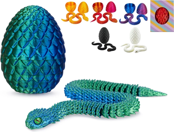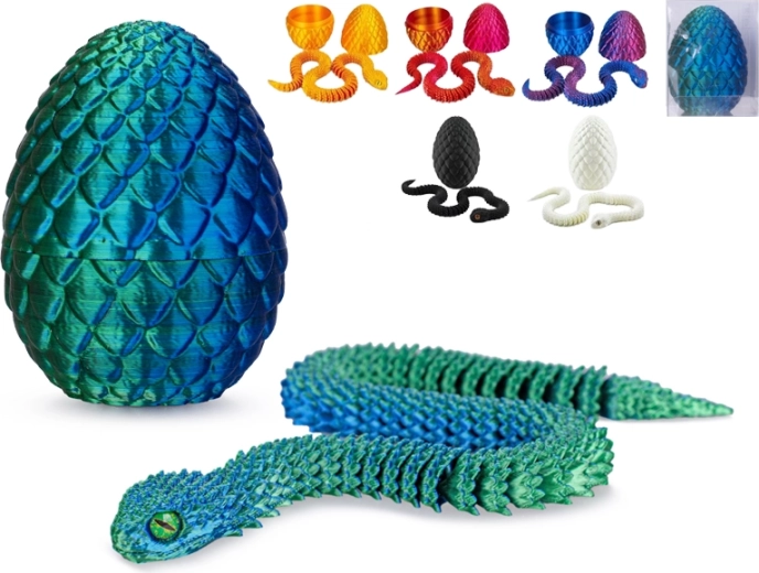 - Realistický vzhled a textura: dračí šupiny na vejci a detailní provedení hada.
