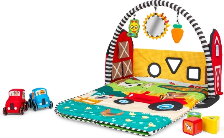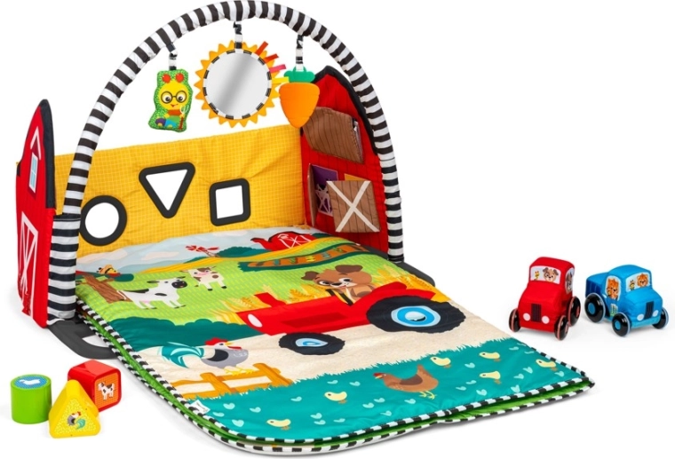 Využijte čas na bříšku, hru pod hrazdičkou, 3D farmu s aktivitami i rozložitelnou cestu pro autíčka – jeden produkt pokryje celé období raného vývoje.