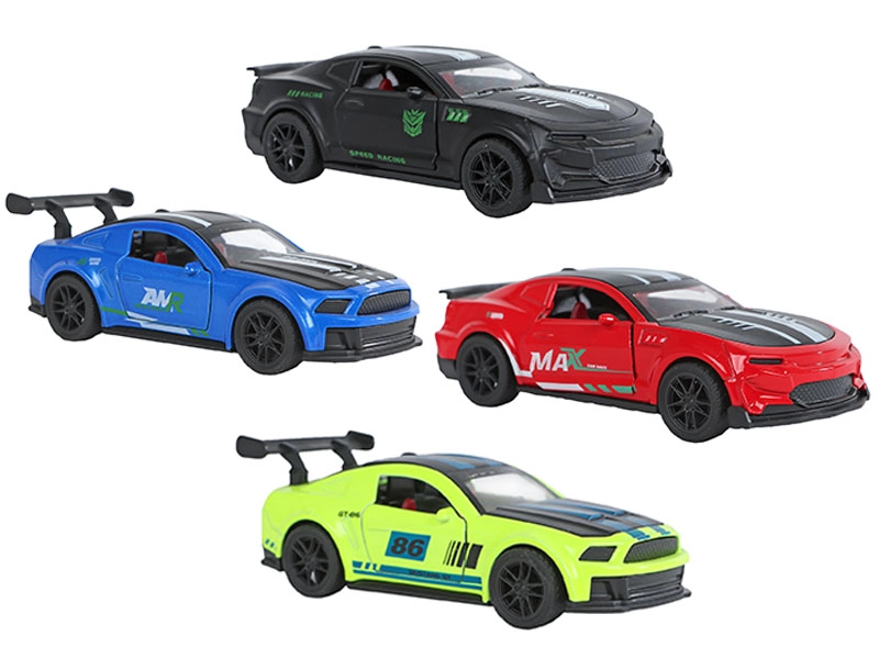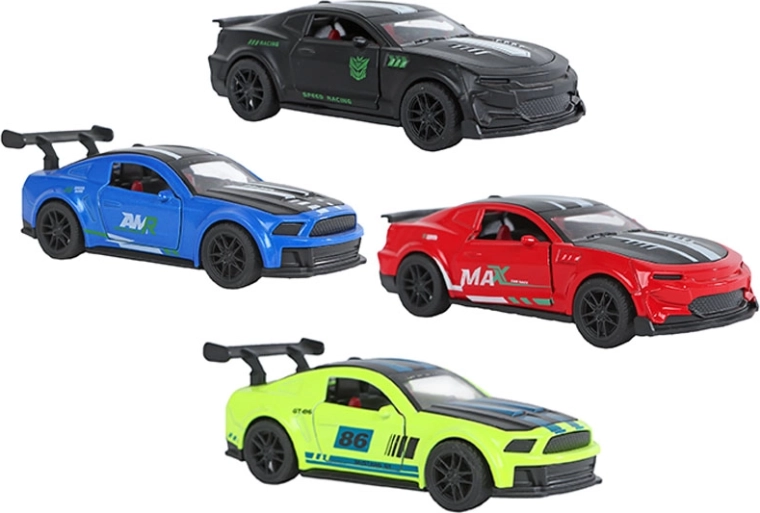 Model je dostupný ve dvou atraktivních verzích – se spoilerem (modrá, žlutá) a bez spoileru (černá, červená). Každý kus je uložen v dárkové krabičce, takže se perfektně hodí jako milý dárek pro malé automobilové nadšence.
