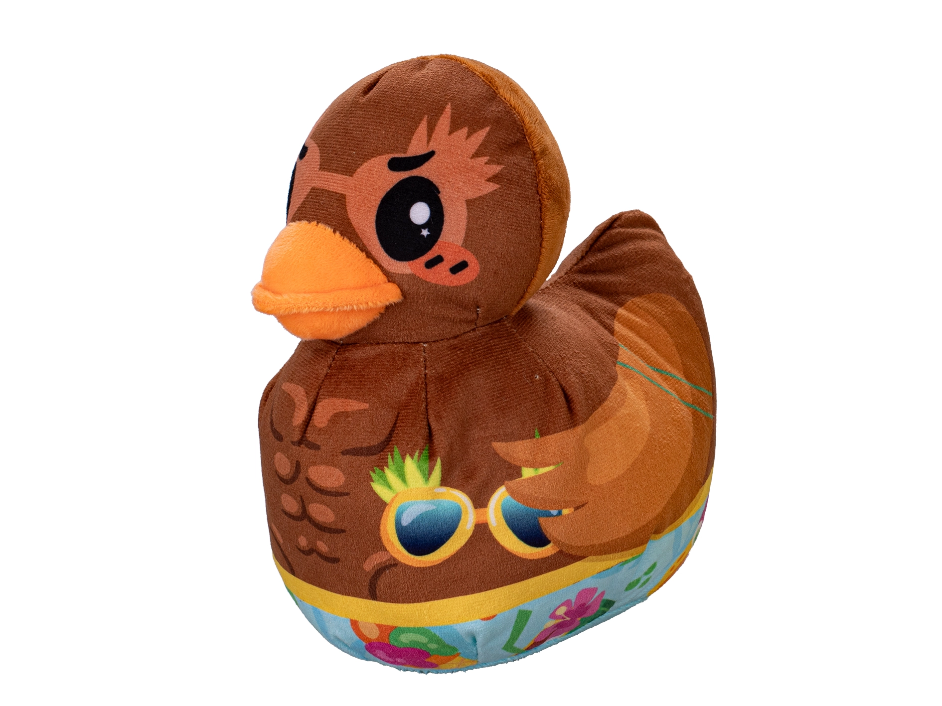 Tato prázdninová edice přináší kačenku v šesti jedinečných provedeních – s motivy pití, v plavkách, s mušlí, s kytičkami, v havajské košili a v hnědé variantě. Díky příjemnému plyši je vhodná pro jemnou dětskou pokožku a stane se prvním mazlícím kamarádem do postýlky, kočárku i na cesty.