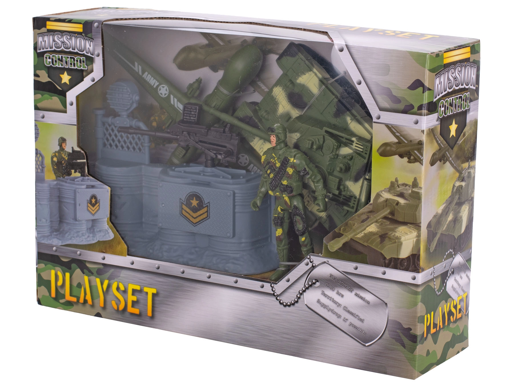 Objevte akční herní sadu Mission Control, která dětem přináší realistická vojenská dobrodružství. Sada obsahuje detailně zpracovaný tank 18,5 cm, figurku vojáka, dělostřeleckou pozici a velitelské stanoviště. Vyrobeno z odolného plastu, vhodné pro děti od 3 let – ideální pro rozvoj fantazie a jemné motoriky.