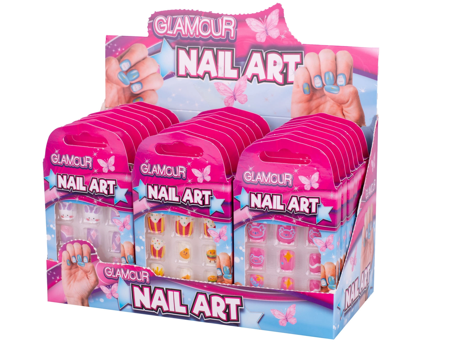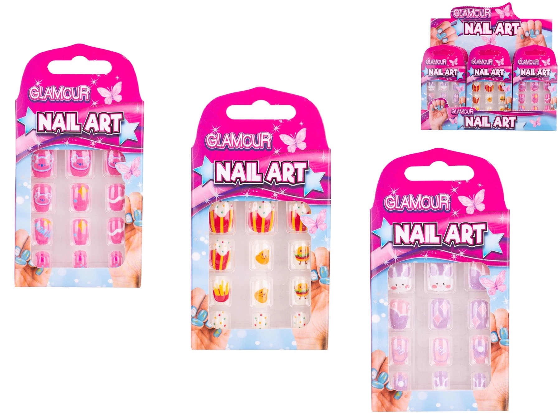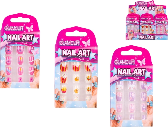 Rozjasněte dětský styl během chvilky se sadou nalepovacích nehtů Glamour. Obsahuje 12 lehkých plastových nehtíků s roztomilými motivy – jídlo, králíčci a koaly. Snadná aplikace bez laku zajistí rychlou proměnu vzhledu, ideální pro oslavy, karnevaly i každodenní hraní. V praktické krabičce pro snadné skladování a přenášení.