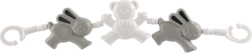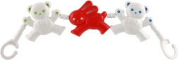 Řetěz na kočárek s medvídky a zajíčkem je ideálním doplňkem pro zabavení vašeho dítěte. Díky různorodým tvarům a jasným barvám pomáhá rozvíjet jemnou motoriku a smysly vašeho batolete. Jednoduché připojení pomocí háčků na obou koncích umožňuje rychlé a snadné připevnění na kočárek nebo postýlku.