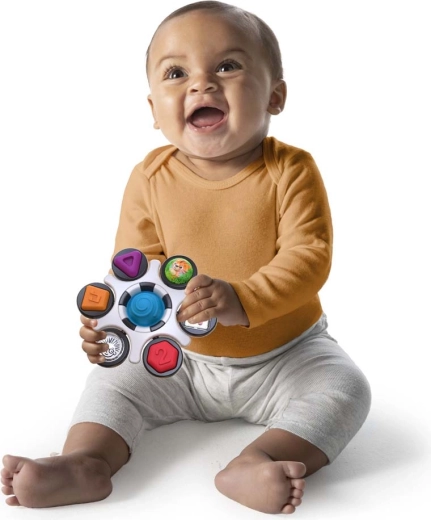 Stlačování, otáčení, klikatka, posouvání a centrální spinner udržují pozornost dítěte a rozvíjejí příčinu a následek i jemnou motoriku.