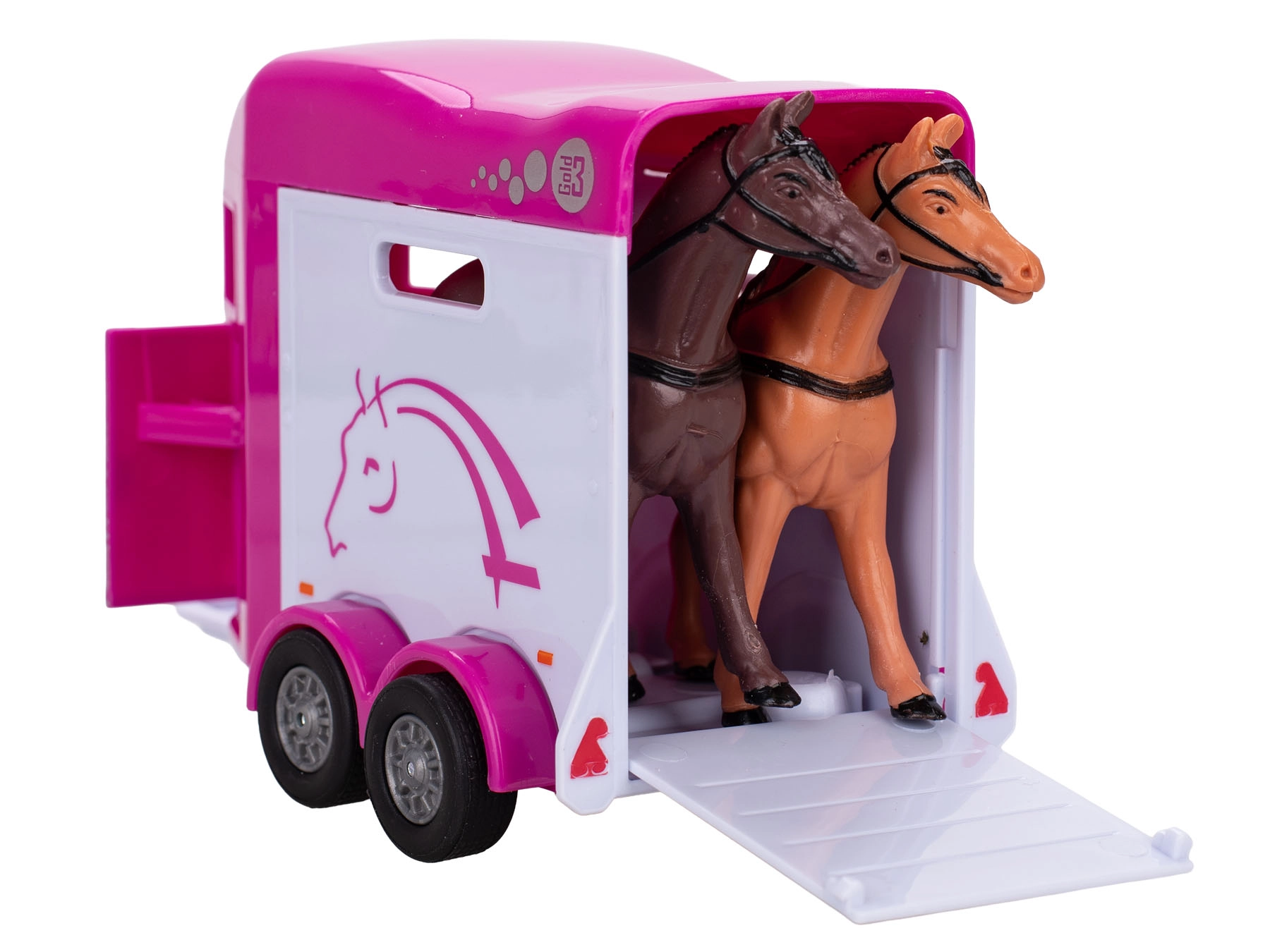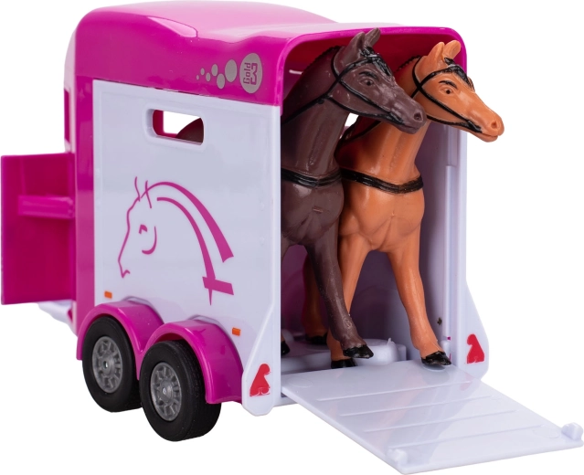 Přívěs je navržen pro bezpečné naložení a přepravu koníků a skvěle doplní dětské scénáře od farmy po jezdecké závody. Model je kompatibilní s běžnými figurkami koní (nejsou součástí balení) a svými rozměry 28 cm působí výrazně v každé sbírce.