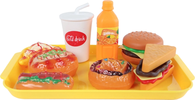 Tato hrací sada rychlého občerstvení je ideální volbou pro děti od 3 let, které milují hry na kuchaře a obsluhu v restauraci. Odolný plast zajišťuje bezpečné a dlouhodobé používání, zatímco pestrá nabídka pokrmů podněcuje kreativní příběhy a učení o různých typech jídel.