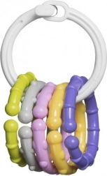 Objevte oblíbené dětské chrastítko – kroužek s barevnými přívěsky, které láká zrak i sluch a motivuje k přirozenému zkoumání. Díky nízké hmotnosti a tvaru padne jistě do malé ručky a pomáhá rozvíjet úchop, koordinaci i první manipulaci s předměty.