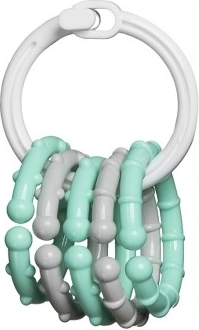Lehký kroužek dobře padne do dlaně a přívěsky se snadno drží. Dítě si při hře procvičuje úchop, obratnost a manipulaci s předměty.