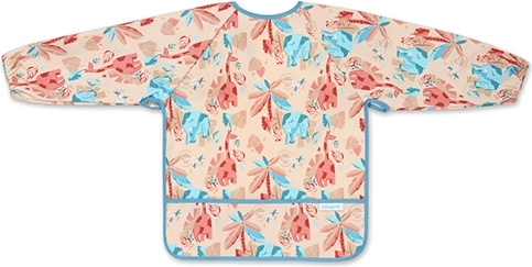Dlouhé rukávy s elastickými manžetami a nepropustný materiál udrží oblečení v suchu a bez skvrn při jídle i tvoření.