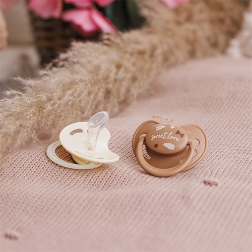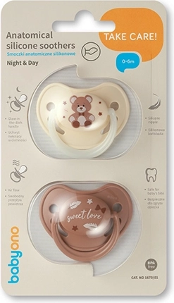 V balení najdete klasický dudlík pro denní použití a noční dudlík se svítící rukojetí, který snadno najdete i ve tmě. Měkký, odolný a hypoalergenní silikon bez BPA je šetrný k dásním, tenký krček snižuje tlak na zoubky a dudlík lze snadno vyvařit a udržovat v čistotě.