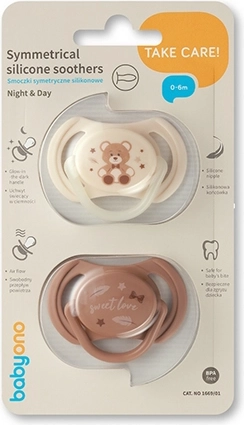 V balení najdete denní dudlík pro každodenní zklidnění a noční dudlík se svítící rukojetí, který snadno najdete i ve tmě. 100% silikon bez BPA je odolný, bezpečný a dobře se čistí – dudlíky lze vyvařovat a rychle dezinfikovat.