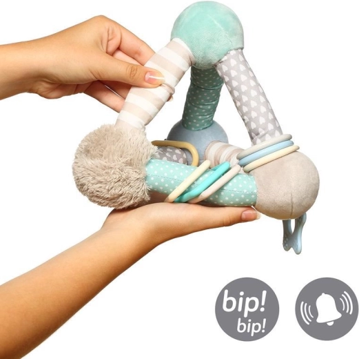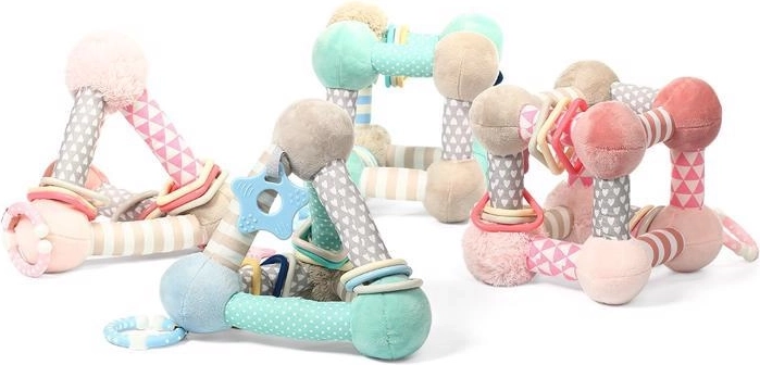 Minimalistické pastelové provedení zapadne do každého pokojíčku. Hračka je ideální na cesty – C kroužek umožňuje jednoduché připnutí na kočárek či autosedačku. Podporuje představivost, kognitivní schopnosti a koordinaci ruka–oko formou bezpečné a zábavné hry.