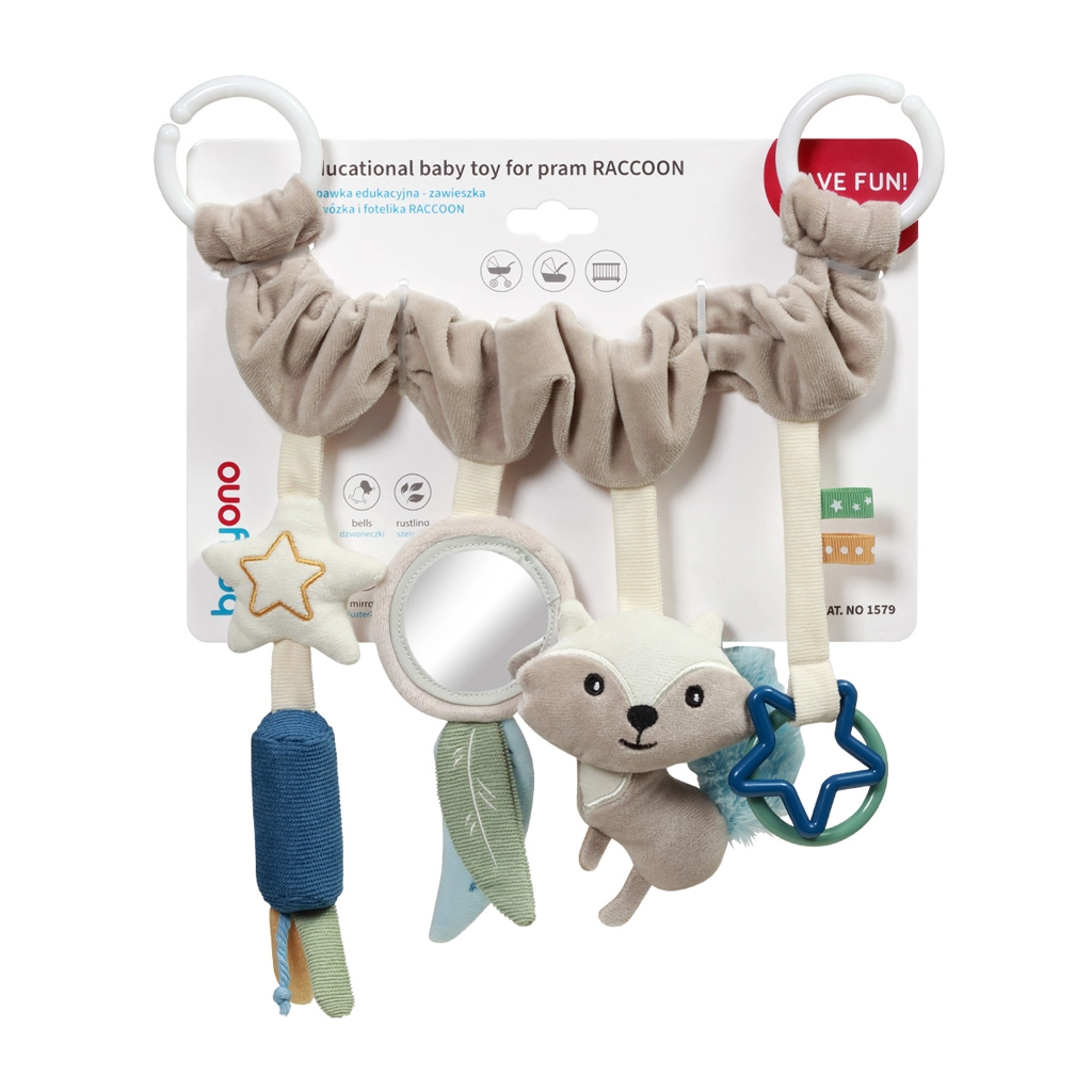 Hrazdička BABYONO Raccoon přináší miminku pestrou smyslovou stimulaci během procházek i cestování. Díky univerzálnímu úchytu ji snadno upevníte na kočárek, autosedačku i postýlku. Měkké materiály jsou šetrné k dětské pokožce a bezpečné provedení podporuje vizuální i hmatový rozvoj.