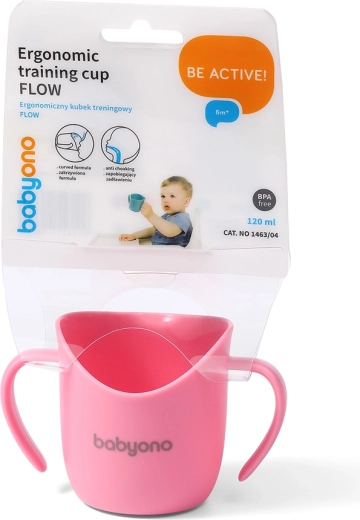 Tréninkový hrnek BabyOno je navržen podle anatomických a motorických schopností batolat. Podporuje přirozený způsob pití z otevřené nádoby, čímž je ideální přechod od láhve či netekoucího hrnku. Nakloněný okraj a široké, ergonomické rukojeti umožňují dítěti přizpůsobit si úhel i tempo pití, což snižuje riziko rozlití a podporuje správný pohyb čelistí.
