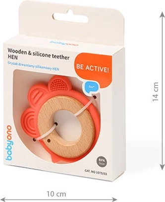 Kousátko BabyOno Hen spojuje přírodní bukové dřevo s měkkým potravinářským silikonem pro jemnou, ale účinnou masáž dásní. Texturované výstupky přinášejí okamžitou úlevu, podporují smyslové vnímání a usnadňují uchopení malými ručičkami. Zvířecí motiv je pro děti atraktivní a láká ke hře.