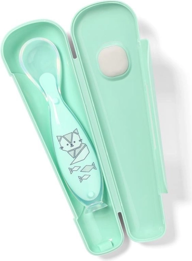 S touto lžičkou bude krmení jednodušší a hygieničtější. Měkká silikonová hlavička je šetrná k citlivým dásním a prvním zoubkům, zatímco přísavka umožní lžičku odložit bez kontaktu se špinavým povrchem. Kompaktní pouzdro udrží lžičku čistou v kabelce, přebalovací tašce i během cestování.