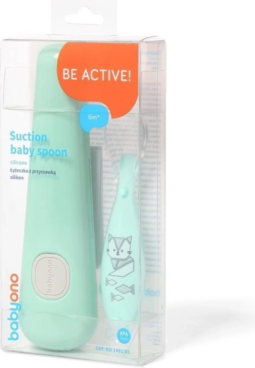 Integrovaná přísavka udrží lžičku ve svislé poloze a zabrání kontaktu se špinavým povrchem.