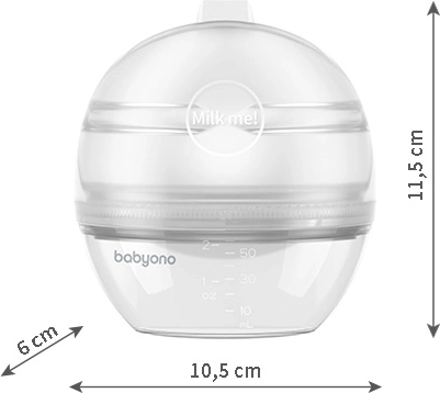 Zaoblený tvar z jemného silikonu se dokonale přizpůsobí prsu a chrání pokožku před podrážděním. Hygienická a bezpečná konstrukce bez BPA se skládá jen ze tří částí, které rychle rozeberete a vyčistíte. Praktická odměrná stupnice vám usnadní kontrolu nasbíraného mléka (objem 60 ml).