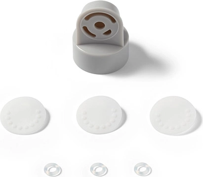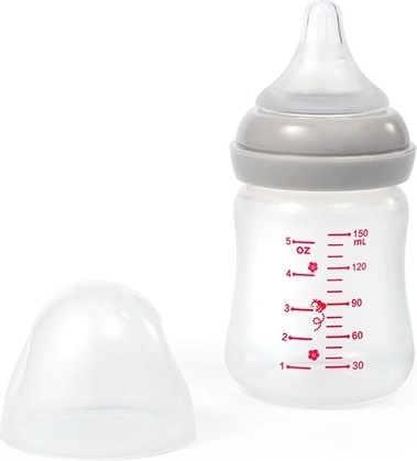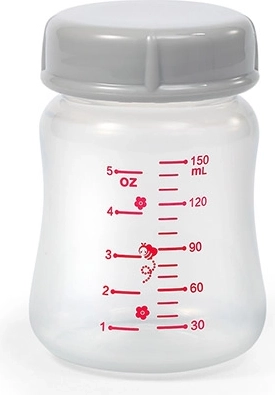 Měkký silikonový nástavec chrání citlivou pokožku a zajišťuje těsnění. Stabilizační podstavec brání převrácení a rozlití mléka.
