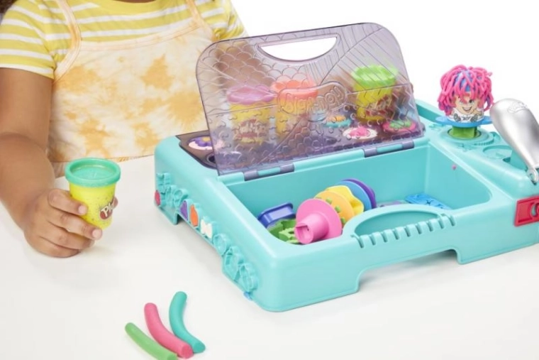 Přenosné studio Play‑Doh Super dílna dá dětem vše, co potřebují pro tvoření doma i na cestách. Odklápěcí tyrkysový kufřík s rukojetí udrží kelímky i nástroje přehledně pohromadě, takže je úklid i přenášení hračka. Vestavěná Fun Factory vytlačuje 9 hravých tvarů, které inspirují k neomezené fantazii.
