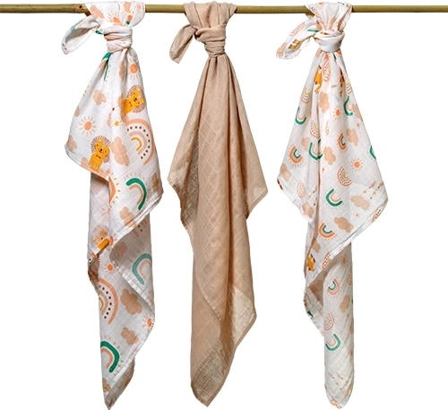 Mušelínová vazba zajišťuje skvělou cirkulaci vzduchu – miminko zůstává v suchu a pohodlí při spánku i zavinutí.