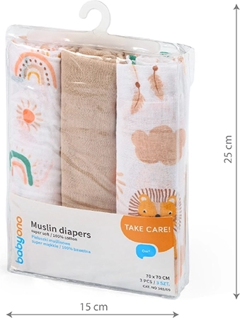 Mušelínové pleny BABYONO Super Soft přinášejí pohodlí a jemnost, na kterou se můžete spolehnout každý den. Dvouvrstvá bavlna je výjimečně vzdušná, takže miminko zůstává v pohodlí v létě i doma po koupeli. Díky univerzálním rozměrům 70 × 70 cm se hodí na zavinutí, odříhnutí, jako lehká dečka, prostěradlo do kočárku i diskrétní překrytí při kojení.