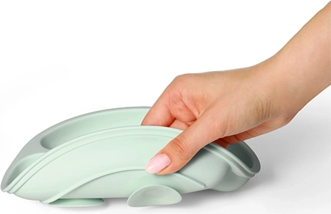 Talíř je vyroben z vysoce kvalitního, zdravotně nezávadného silikonu, je příjemný na dotek, odolný a snadno se udržuje – mýt v myčce i předehřívat v mikrovlnné troubě. Ergonomický tvar podporuje rozvoj jemné motoriky a přirozené učení samostatnému jedení.