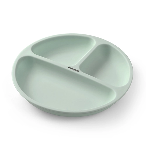 Objevte chytré stolování s dětským silikonovým talířem BabyOno. Velká přísavka pevně drží na hladkém povrchu a pomáhá předejít rozlití či shození talíře. Tři přihrádky oddělí jednotlivé porce a usnadní zavádění nových potravin do jídelníčku.