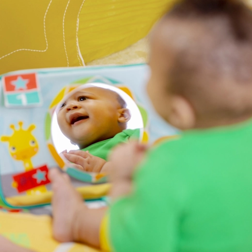 Na bříšku, vleže, vsedě i na cestách – hrazdičky a hračky snadno přeuspořádáte podle věku a potřeb miminka.