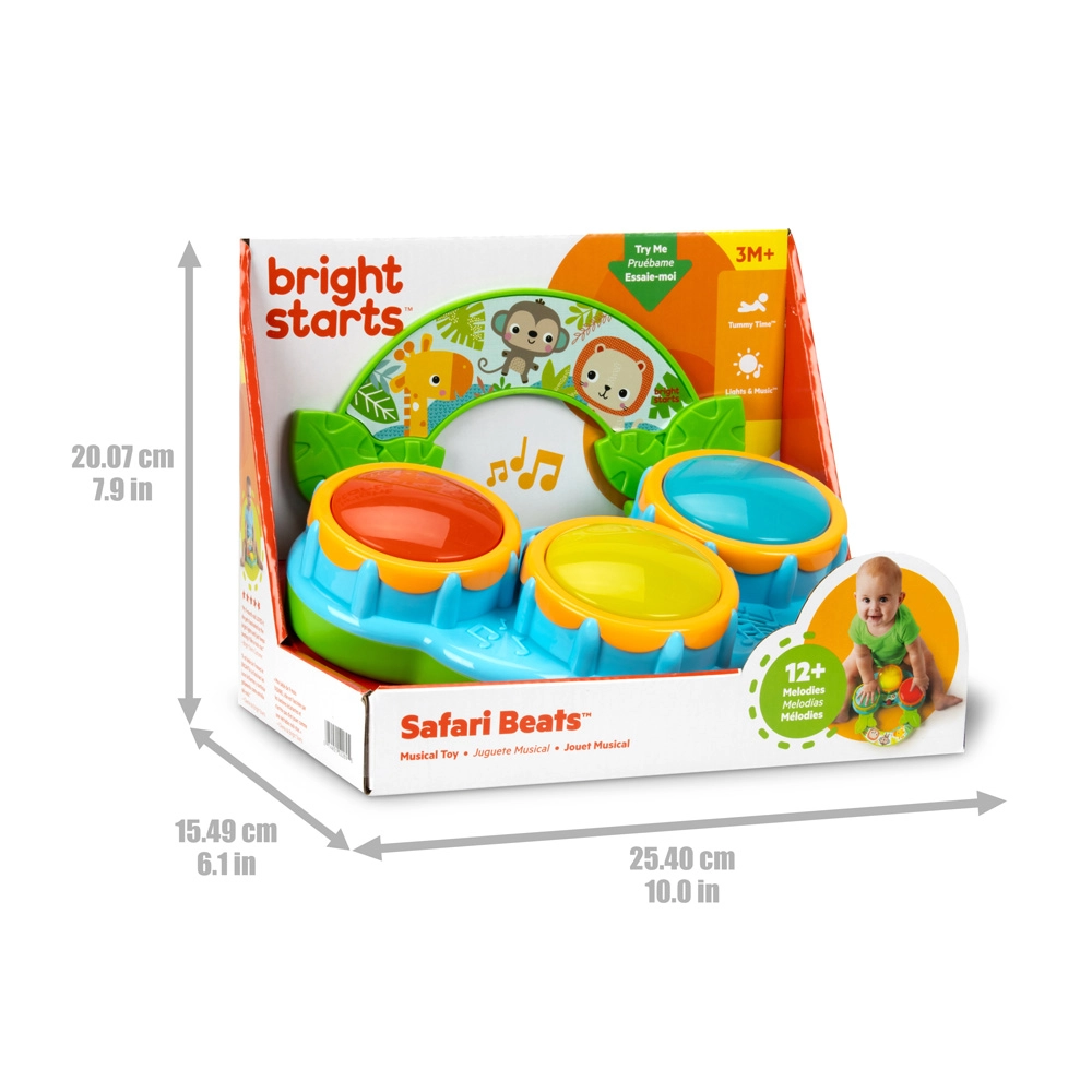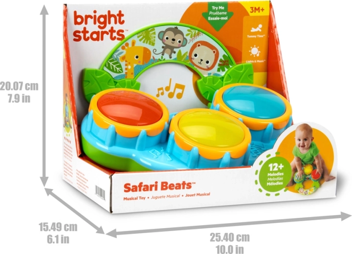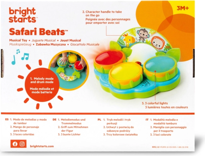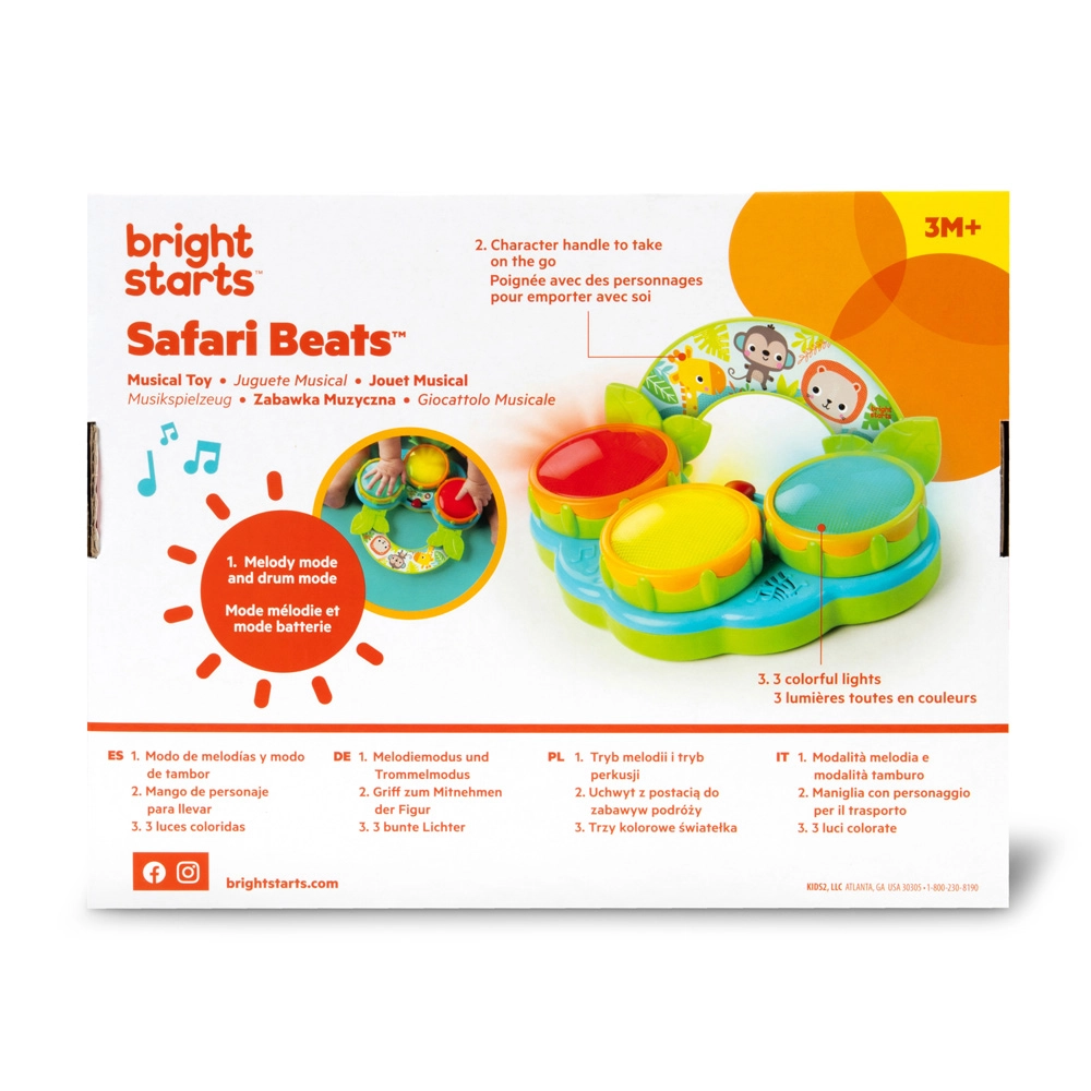 Safari Beats pomáhá rozvíjet jemnou i hrubou motoriku, koordinaci ruka–oko a smyslové vnímání. Hračka je připravena k okamžitému hraní – součástí balení jsou vyměnitelné baterie AA.