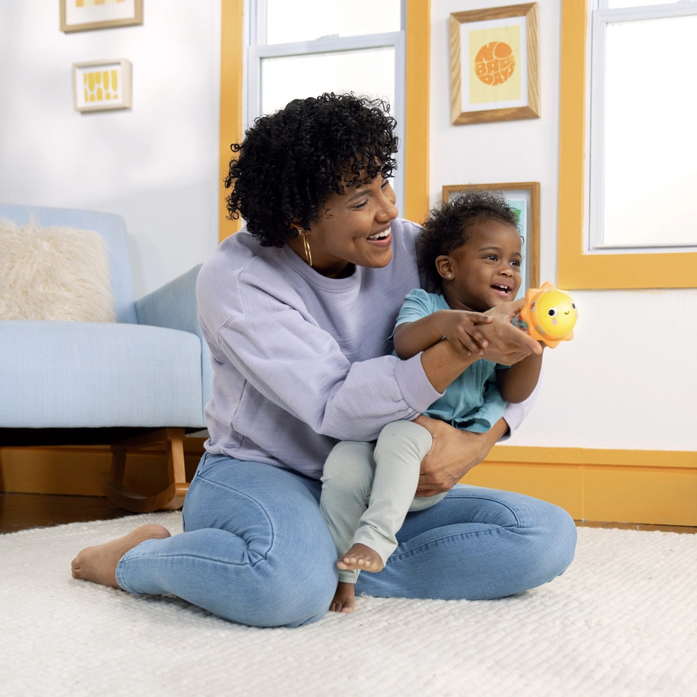 Otočte svítící sluníčko a objevte více než 30 melodií a zvuků zvířátek (kočka, medvěd, žába, opice, ptáček, lev). Ideální pro rozvoj sluchu a učení příčiny a následku.