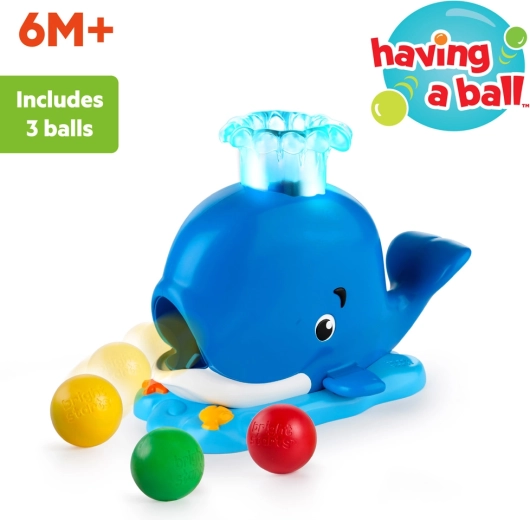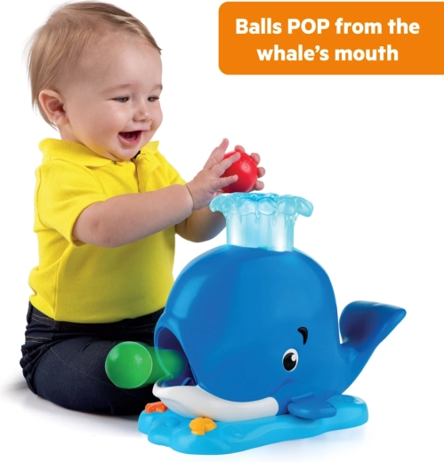 Tato roztomilá velryba je skvělá pro rozvoj motoriky, koordinačních dovedností a představivosti. Opakované vkládání a mačkání podporuje princip příčina–následek, zatímco honění míčků motivuje k pohybu a plazení.