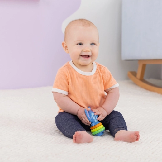 Objevte hravou senzomotorickou hračku Twist‑a‑Stitch, která zaujme miminka jasnými barvami a roztomilým motivem DISNEY STITCH. Děti mohou otáčet texturované kroužky s příjemným klikáním a hračku třást jako chrastítko. Podporuje jemnou motoriku, zrakovou a sluchovou stimulaci a díky lehké, kompaktní konstrukci je ideální na cesty.