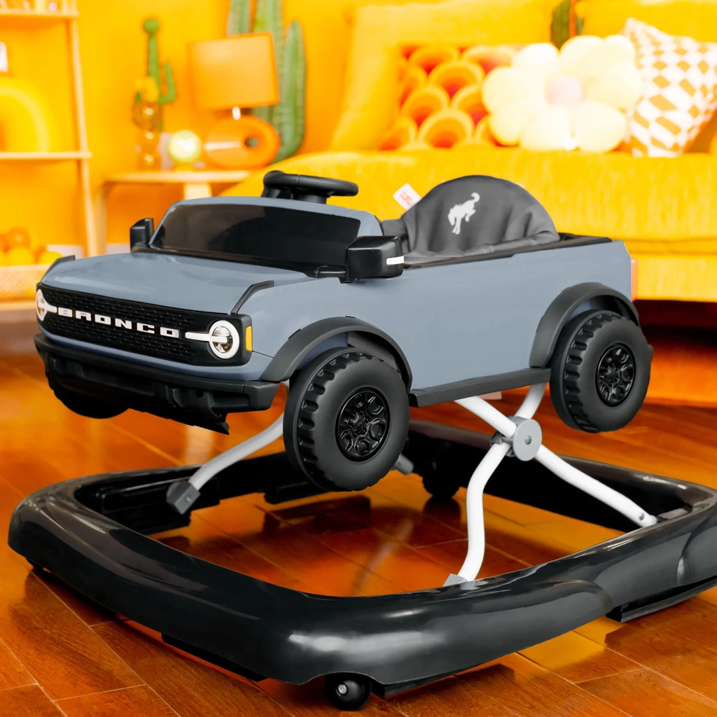 Stylové dětské chodítko 4v1 inspirované ikonickým vozem FORD BRONCO roste s vaším dítětem od 6 měsíců až do 12 kg. Nabízí 4 režimy používání (sezení a jízda, tlačení a chůze, kombinované hraní a odnímatelný volant s efekty), nastavitelnou výšku ve 3 úrovních, stabilní širokou základnu a pohodlné pratelné sedadlo. Interaktivní světla a zvuky podporují smyslový rozvoj a hrubou motoriku, zatímco snadné skládání usnadňuje uskladnění i přenášení.