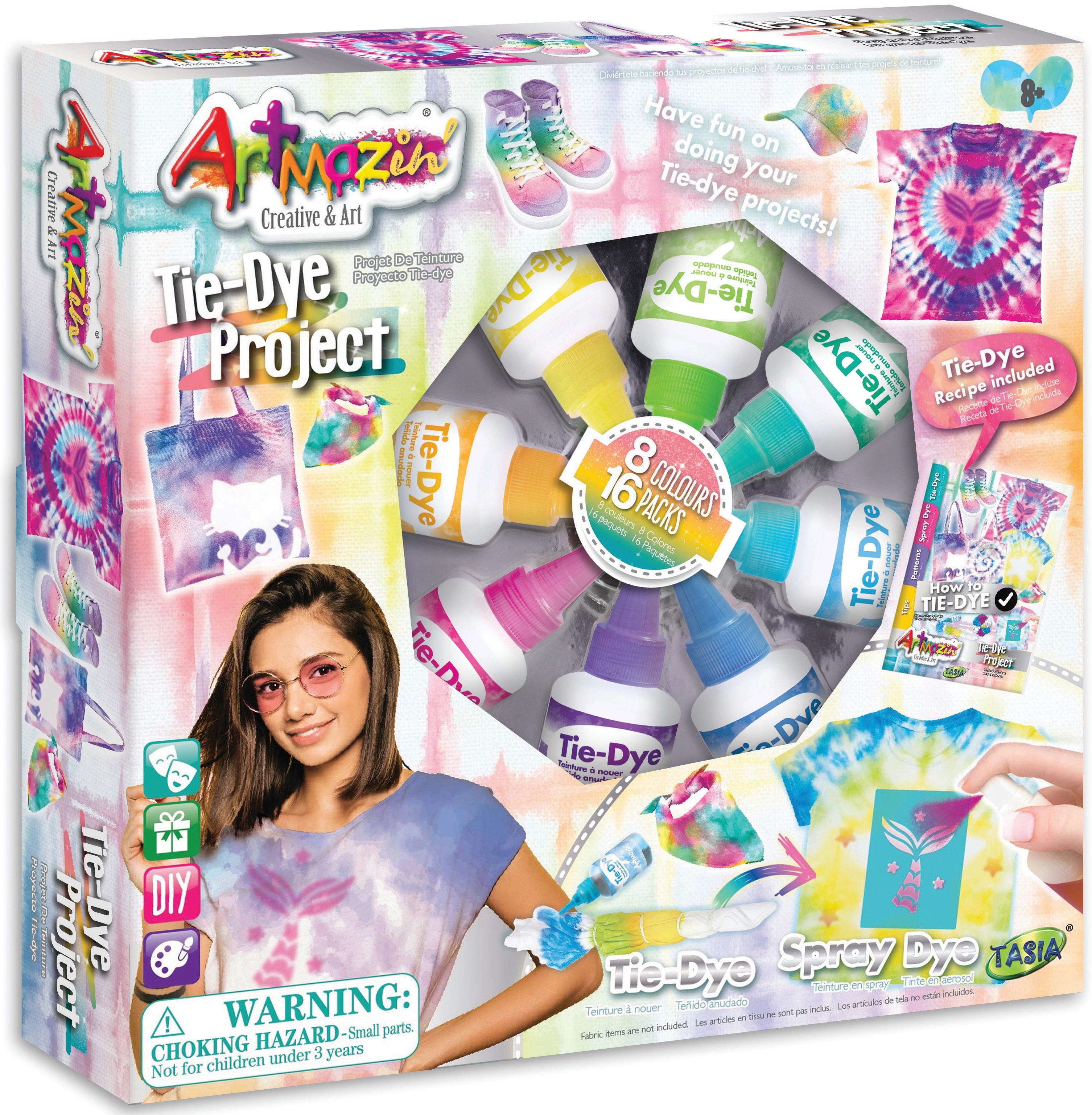 S batikovací sadou Tasia proměníte obyčejný textil v jedinečné kousky. Osm sytých odstínů umožní vytvářet spirály, pruhy i mramorové efekty, a to zábavnou a jednoduchou technikou vhodnou pro děti. Ergonomicky navržené lahvičky se dobře drží i v malých rukách a usnadňují přesné dávkování barev.