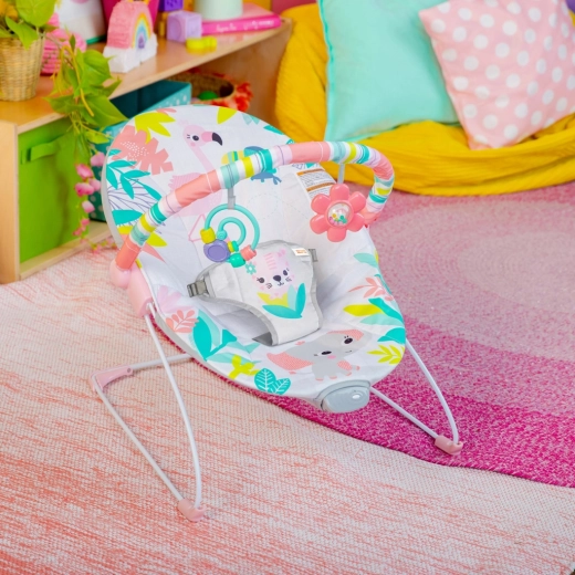 Lehátko Rainforest Vibes promění každý den v malou džungli radosti. Měkké, ergonomicky tvarované sedátko poskytne vašemu miminku útulínek, zatímco uklidňující vibrace pomohou k rychlejšímu zklidnění a pohodě. Díky stabilní kovové konstrukci s protiskluzovými nožičkami a tříbodovému bezpečnostnímu pásu máte jistotu bezpečného používání.