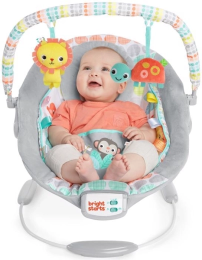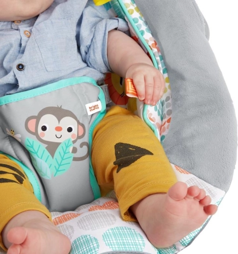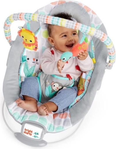 Lehátko Bright Starts Whimsical Wild je navrženo pro každodenní pohodlí a zábavu. Měkké polstrování, odnímatelná opěrka hlavy a integrovaná novorozenecká vložka poskytují miminku správnou oporu. Uklidňující vibrace a 7 melodií s nastavitelnou hlasitostí pomáhají utišit a uspat, zatímco časovač 15 minut šetří baterie.