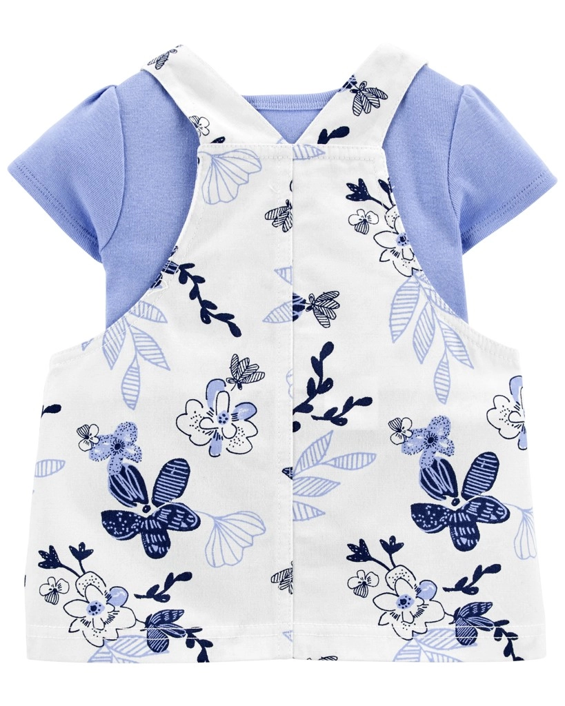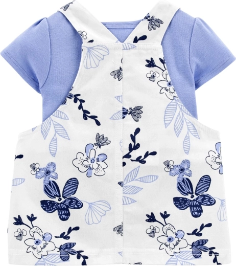 Roztomilý dívčí set do horkých dnů: měkoučké body s krátkým rukávem a lehké šaty na kšandy s modrým květinovým vzorem. Díky kvalitní 100% bavlně je outfit jemný k dětské pokožce, snadno se obléká a je maximálně pohodlný na nošení. Praktická volba do výbavičky, která šetří čas při kombinování.